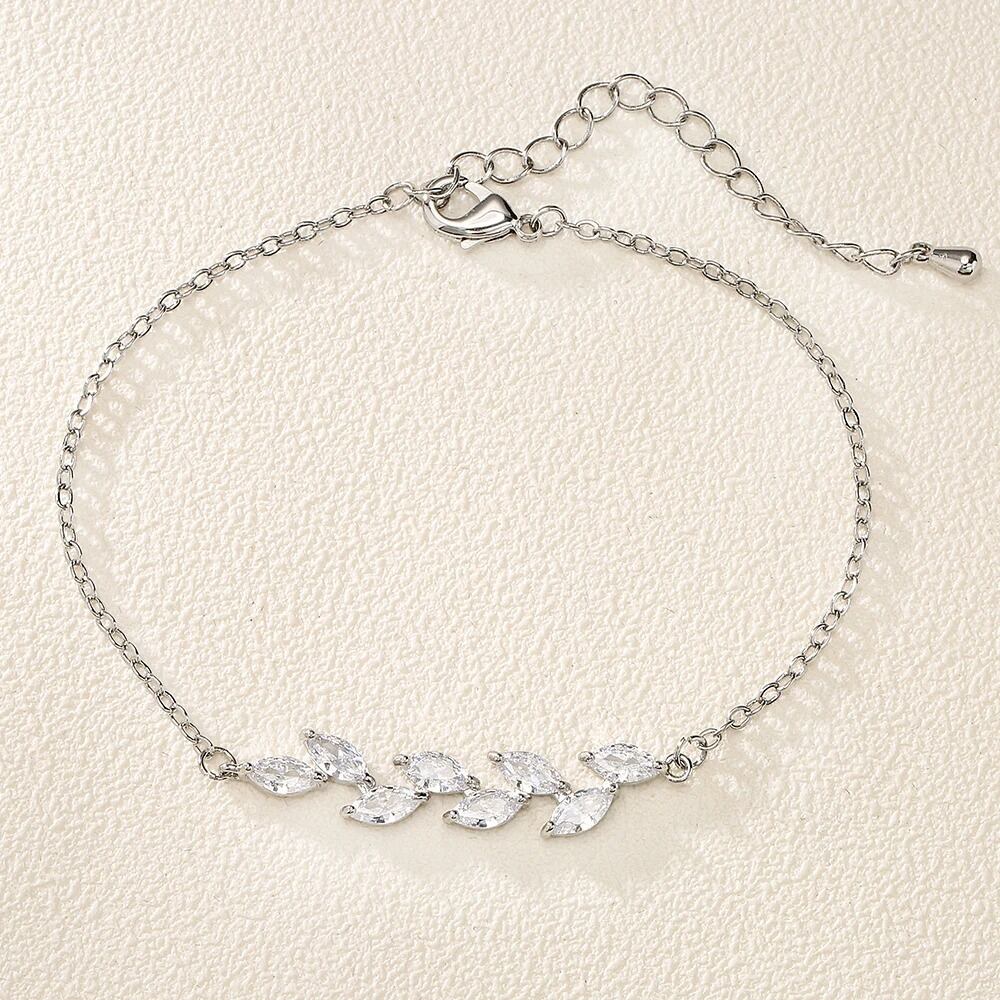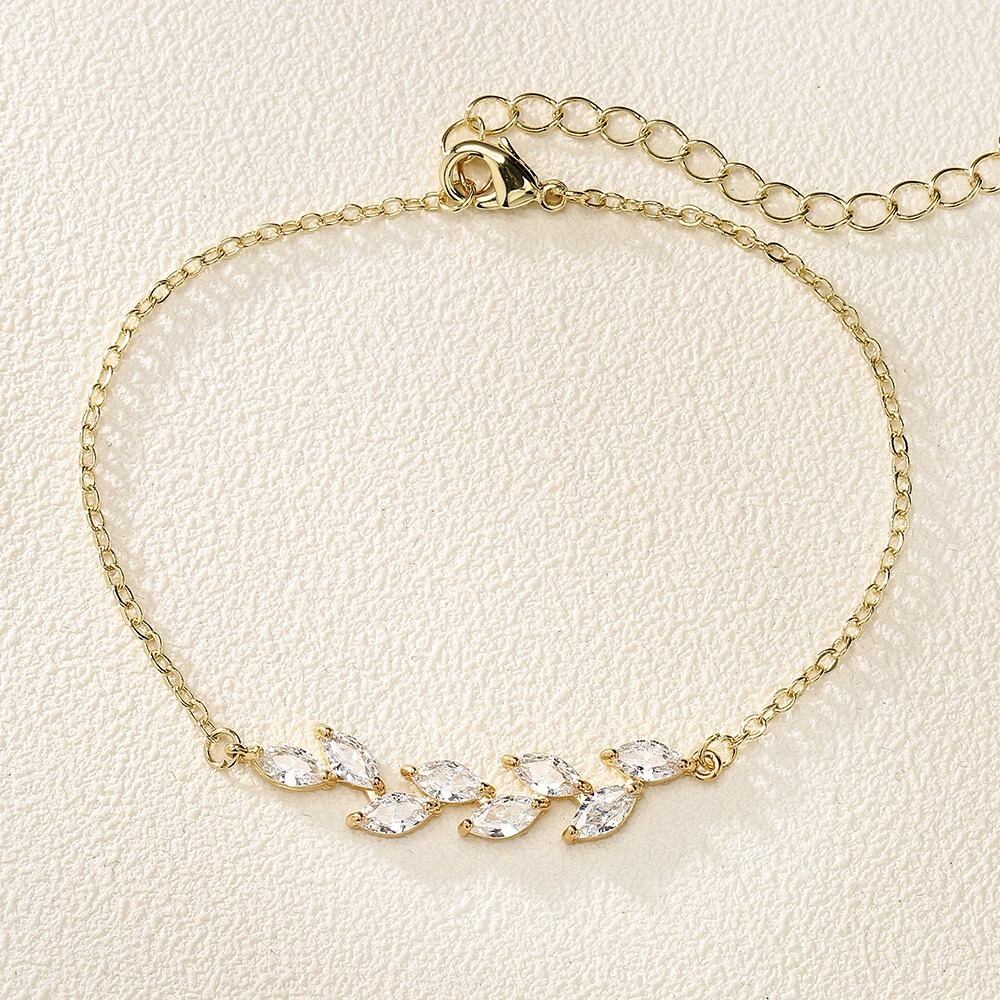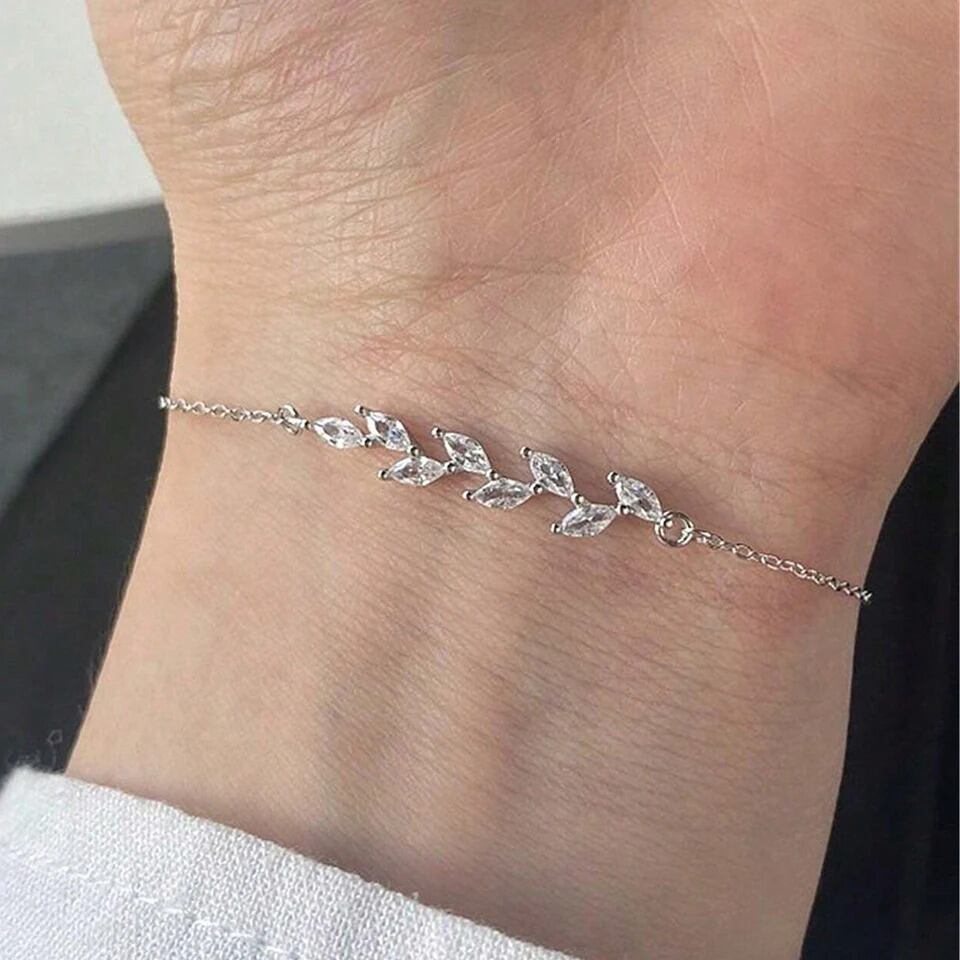 キラキラ光るジルコンリーフデザインブレスレット