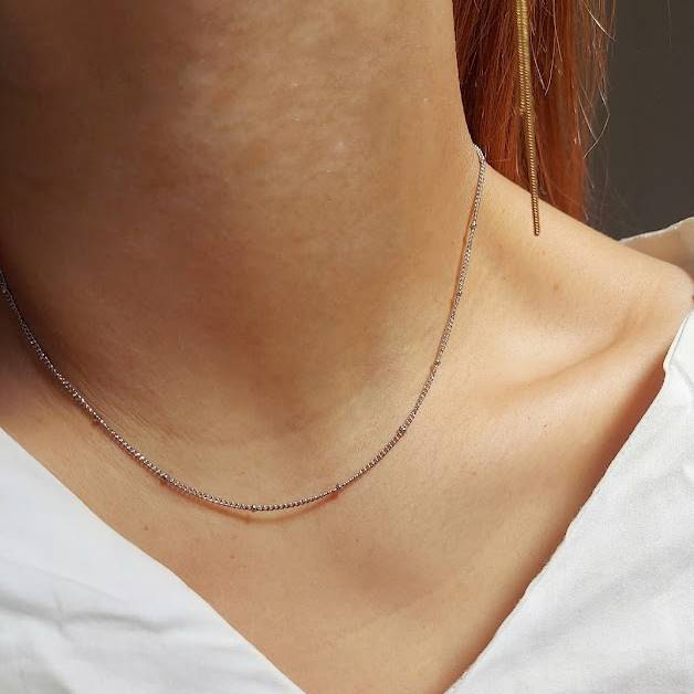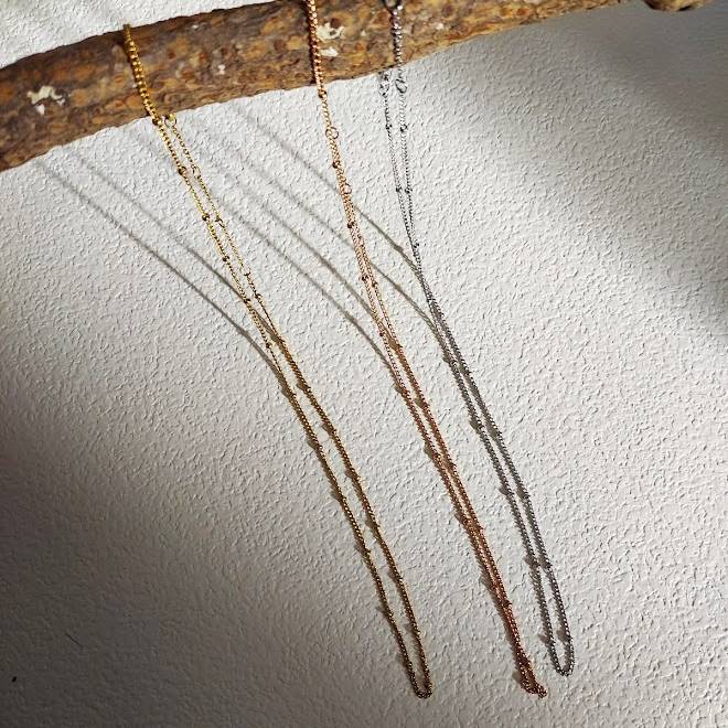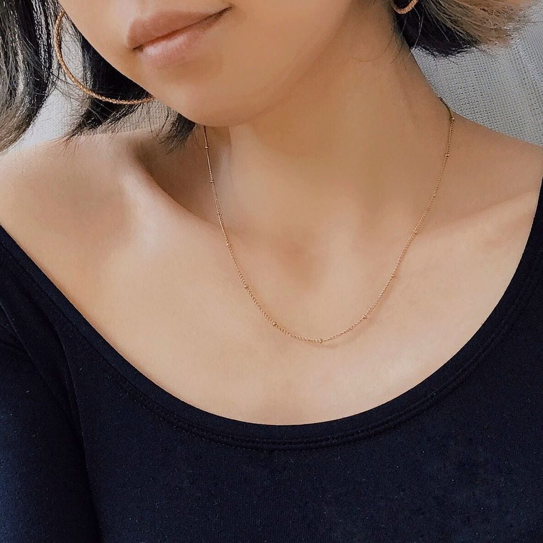 丸いドットがアクセントになったシンプルなチェーンネックレス