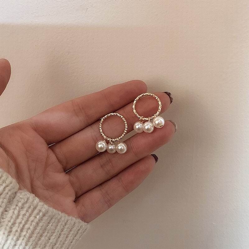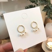 ゴールドサークルにパールが3つぶら下がった小ぶりなピアスです。