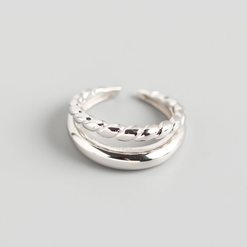 silver925素材のプランプラインとツイストラインがひとつになった艶感のあるダブルラインリング。