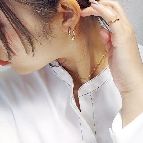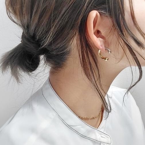 角度によって表情が変わるシルバー×ゴールドのぽってりCフープピアス。