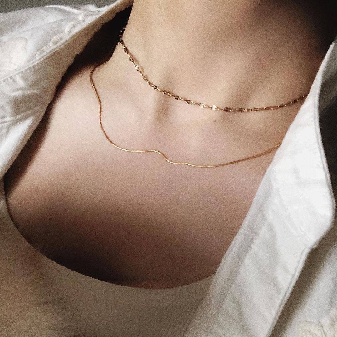 もちろん1mmスネークチェーンのサイズ違いを重ねて付けても可愛いです。