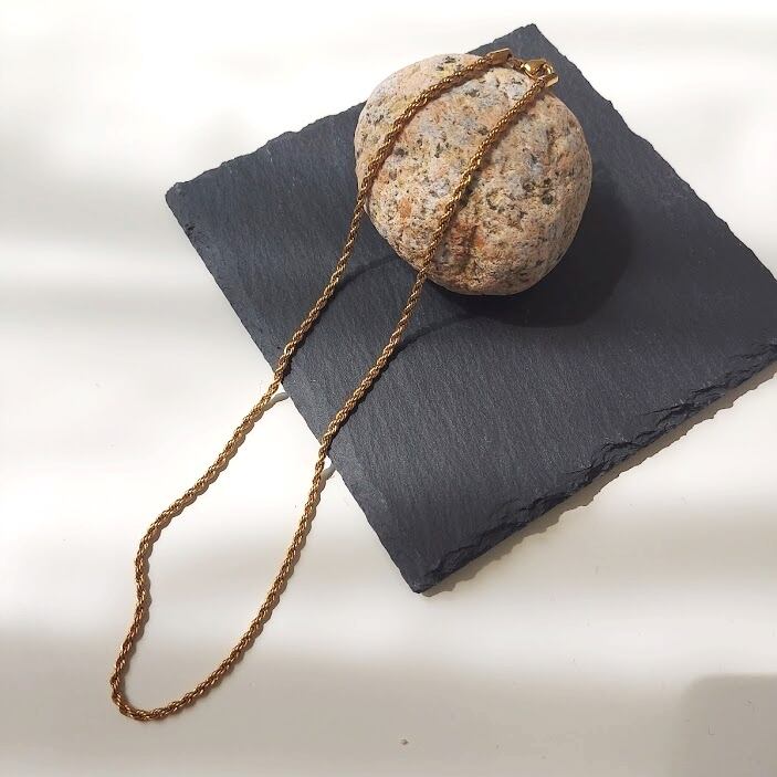 2mm幅のツイストロープチェーンは程よい存在感で1本でも美しく首元を彩ってくれます。
