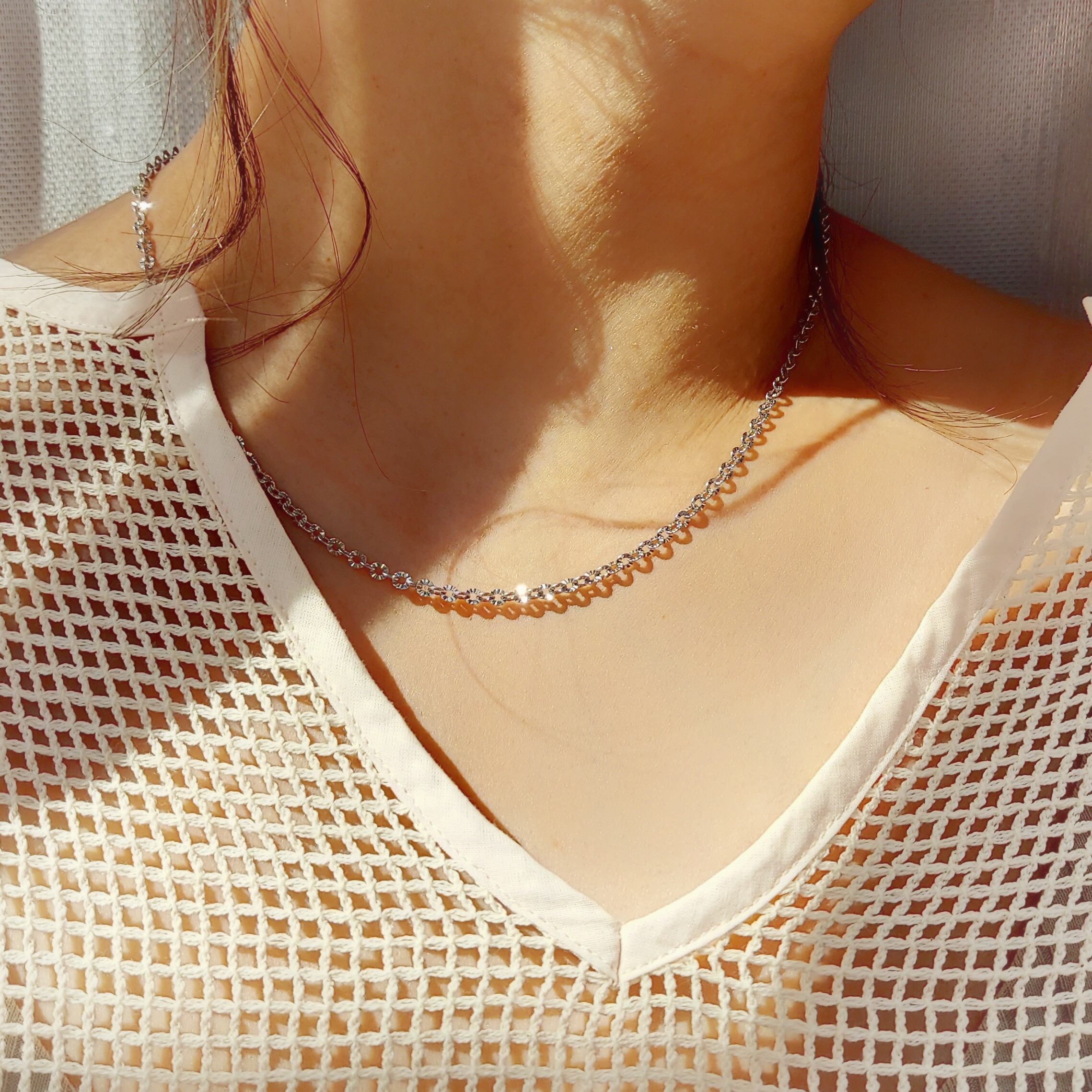 小さなお花のようにも宝石のようにも見えるデザインチェーンネックレスです。