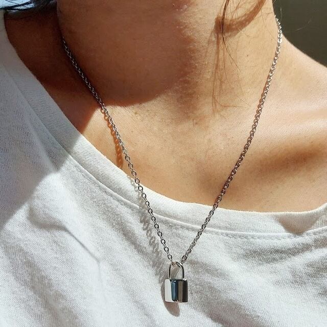 ミニサイズの南京錠がアクセントになるステンレスネックレス。