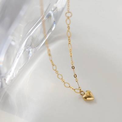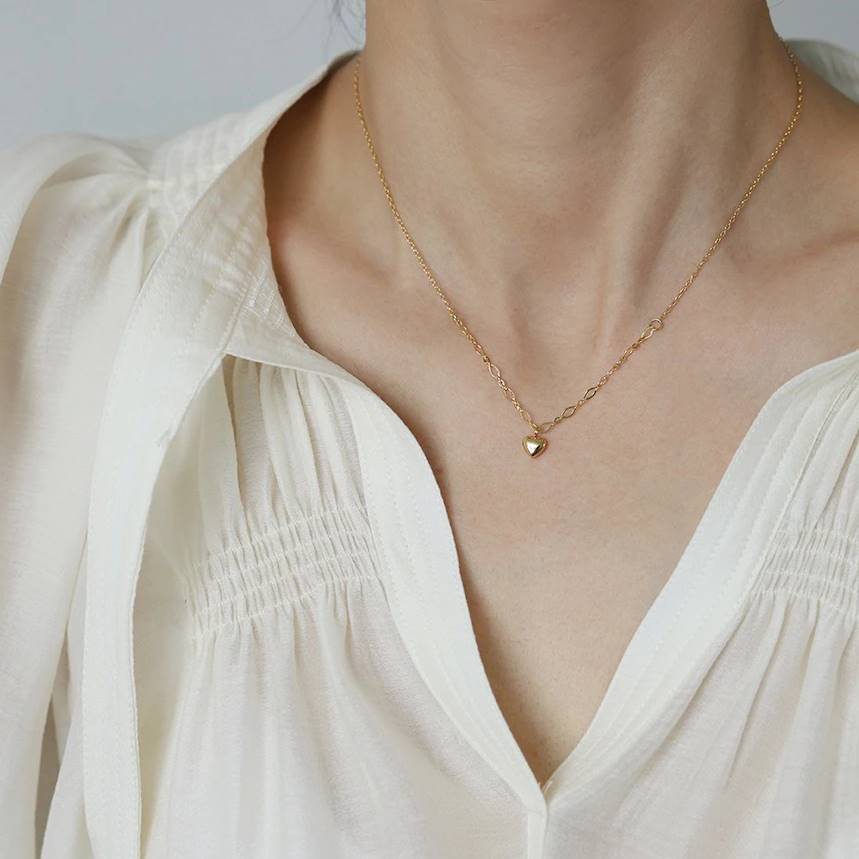 ぷっくりした一粒ゴールドハートが可愛いネックレス