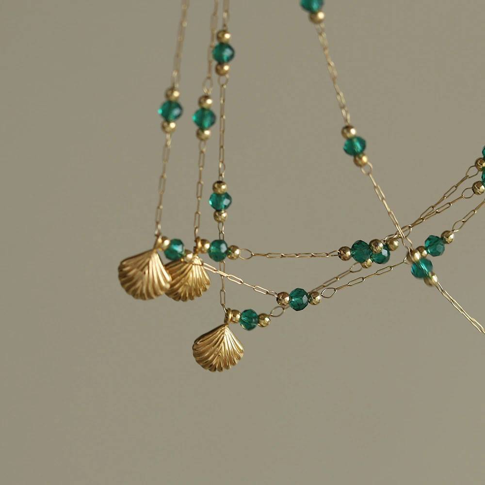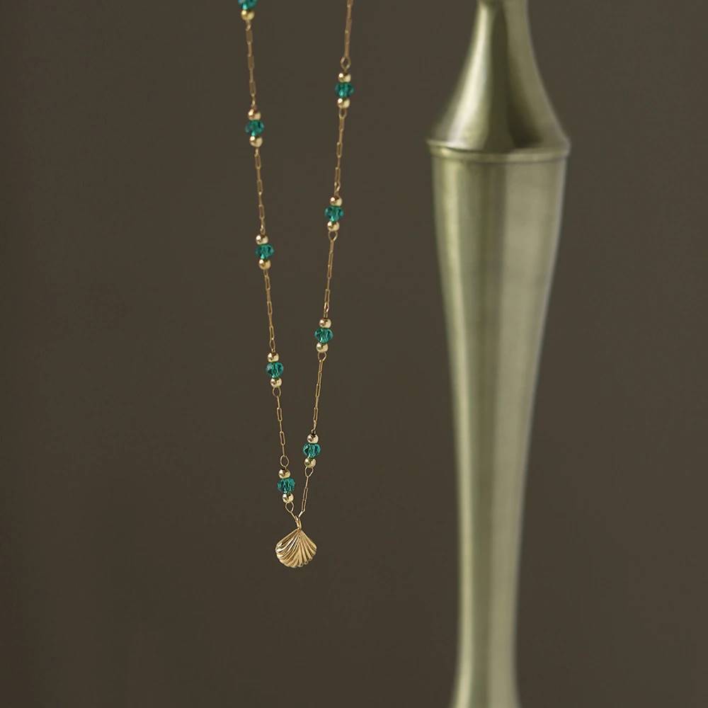 ■ green beads shell necklace