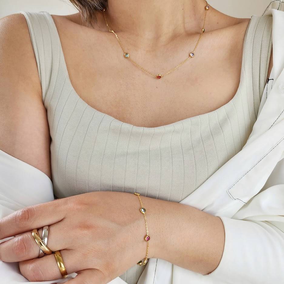 色とりどりのカラフルなキュービックジルコニアネックレス